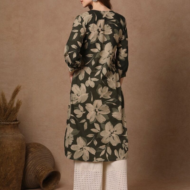 Olive Bloom 2-Piece Printed Suit – Kurta With Embroidered Trouser