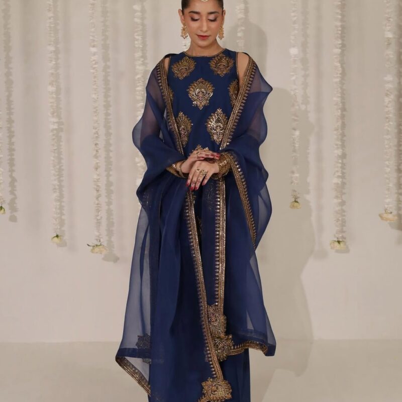 Noor-e-Nigaar – Navy Blue Embroidered 3-Piece Suit